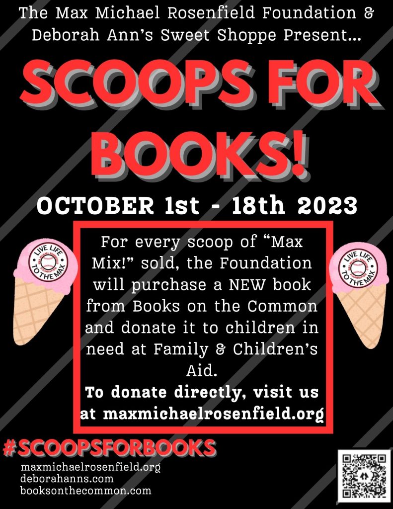 For every scoop of "Max Mix!" sold, the Foundation will purchase a NEW BOOK from Books on the Common and donate it to children in need at Family & Children's Aid.
